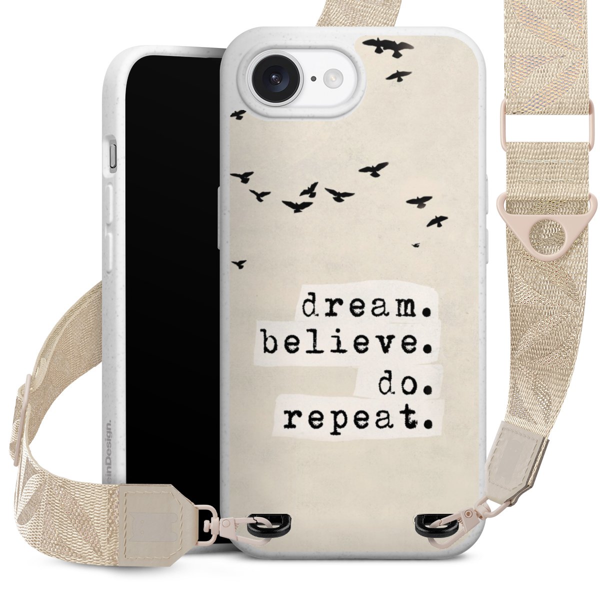 Gestalte Dein Case ganz nach Deinen Wünschen! Edles Creme oder lieber klassisches Schwarz? Du entscheidest, welche Farbe am besten zu Dir passt. Die dezenten Designs der Gurtbänder passen garantiert zu Deiner Hülle, egal mit welchem Lieblingsmotiv Du Dein Case bedrucken lässt.