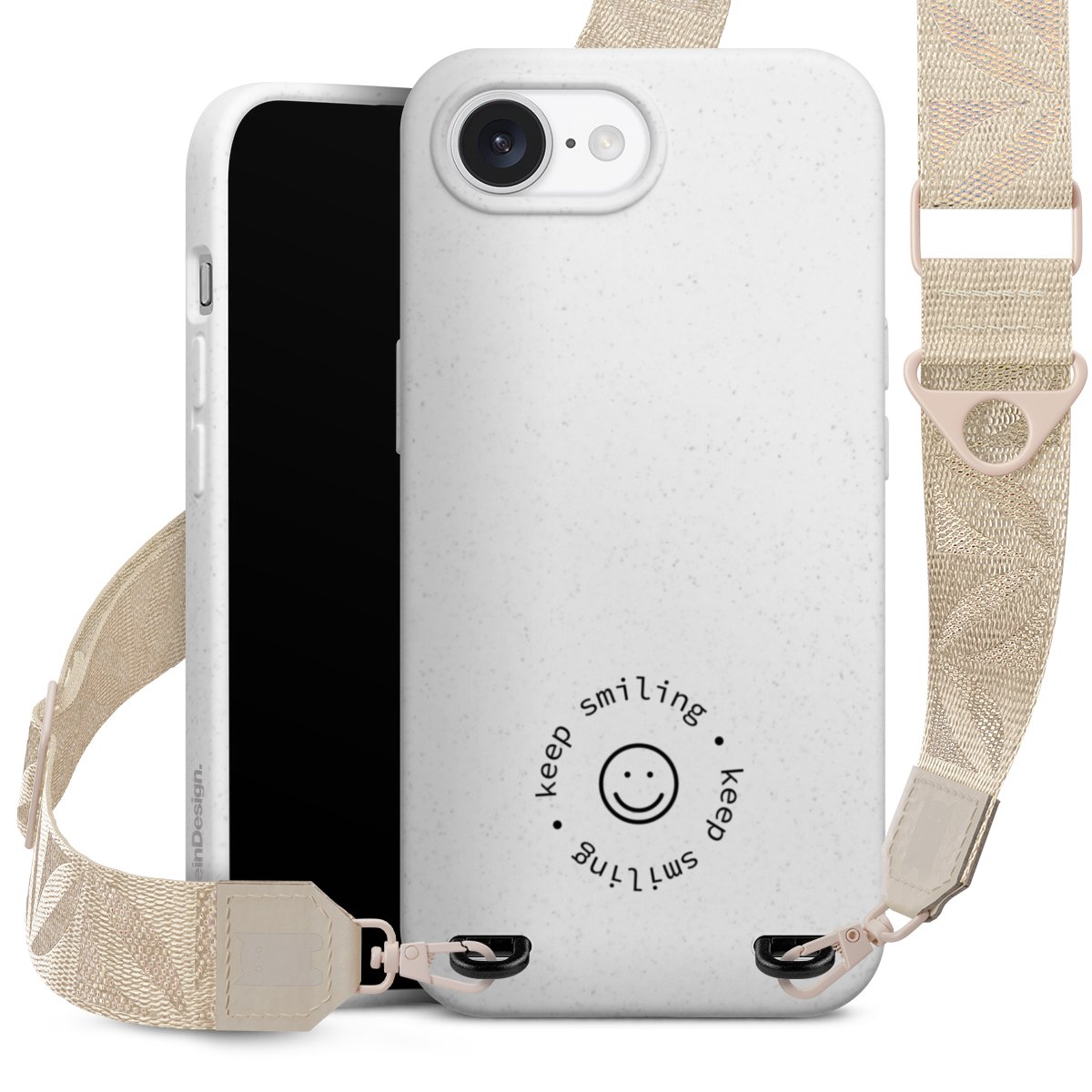 Gestalte Dein Case ganz nach Deinen Wünschen! Edles Creme oder lieber klassisches Schwarz? Du entscheidest, welche Farbe am besten zu Dir passt. Die dezenten Designs der Gurtbänder passen garantiert zu Deiner Hülle, egal mit welchem Lieblingsmotiv Du Dein Case bedrucken lässt.