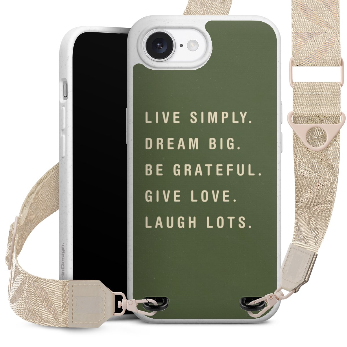 Gestalte Dein Case ganz nach Deinen Wünschen! Edles Creme oder lieber klassisches Schwarz? Du entscheidest, welche Farbe am besten zu Dir passt. Die dezenten Designs der Gurtbänder passen garantiert zu Deiner Hülle, egal mit welchem Lieblingsmotiv Du Dein Case bedrucken lässt.