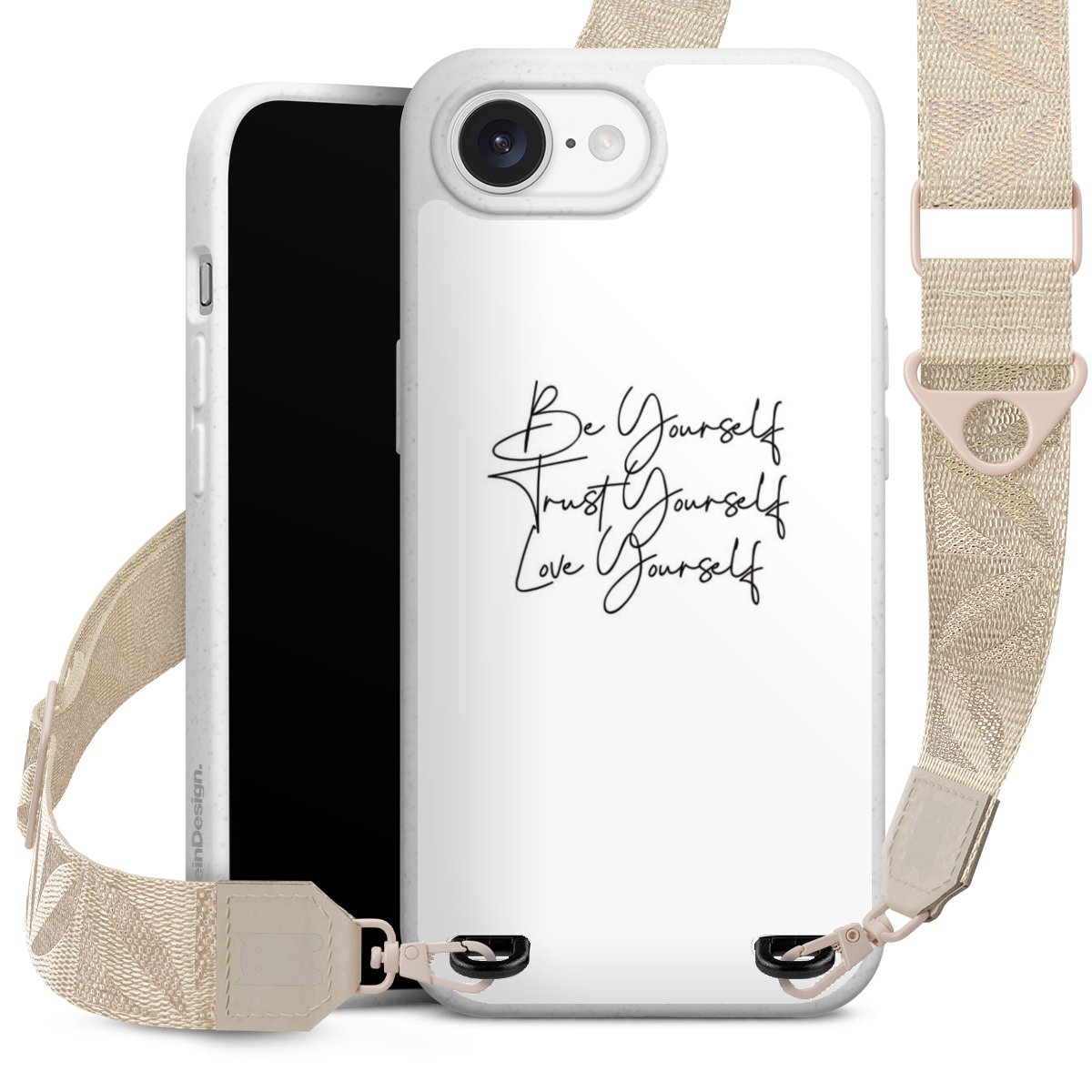 Gestalte Dein Case ganz nach Deinen Wünschen! Edles Creme oder lieber klassisches Schwarz? Du entscheidest, welche Farbe am besten zu Dir passt. Die dezenten Designs der Gurtbänder passen garantiert zu Deiner Hülle, egal mit welchem Lieblingsmotiv Du Dein Case bedrucken lässt.