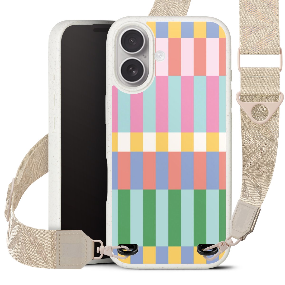Gestalte Dein Case ganz nach Deinen Wünschen! Edles Creme oder lieber klassisches Schwarz? Du entscheidest, welche Farbe am besten zu Dir passt. Die dezenten Designs der Gurtbänder passen garantiert zu Deiner Hülle, egal mit welchem Lieblingsmotiv Du Dein Case bedrucken lässt.