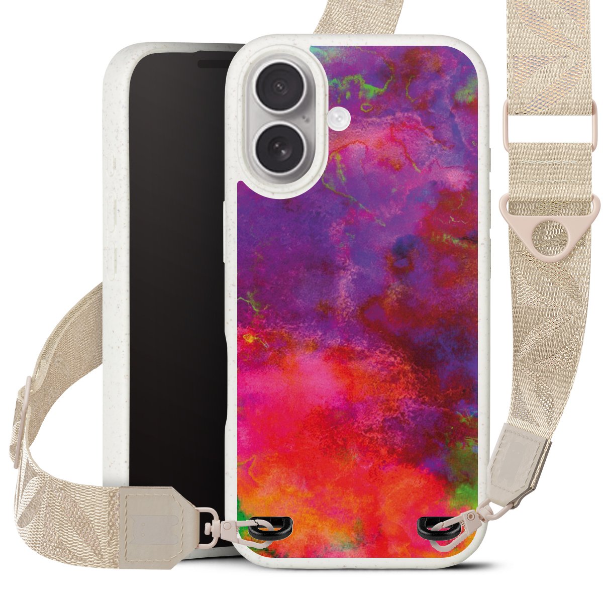 Gestalte Dein Case ganz nach Deinen Wünschen! Edles Creme oder lieber klassisches Schwarz? Du entscheidest, welche Farbe am besten zu Dir passt. Die dezenten Designs der Gurtbänder passen garantiert zu Deiner Hülle, egal mit welchem Lieblingsmotiv Du Dein Case bedrucken lässt.