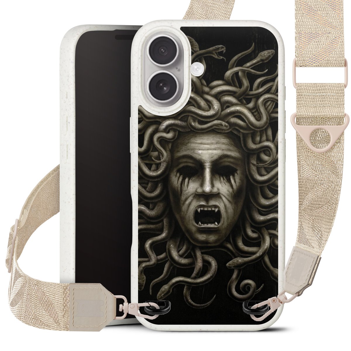 Gestalte Dein Case ganz nach Deinen Wünschen! Edles Creme oder lieber klassisches Schwarz? Du entscheidest, welche Farbe am besten zu Dir passt. Die dezenten Designs der Gurtbänder passen garantiert zu Deiner Hülle, egal mit welchem Lieblingsmotiv Du Dein Case bedrucken lässt.