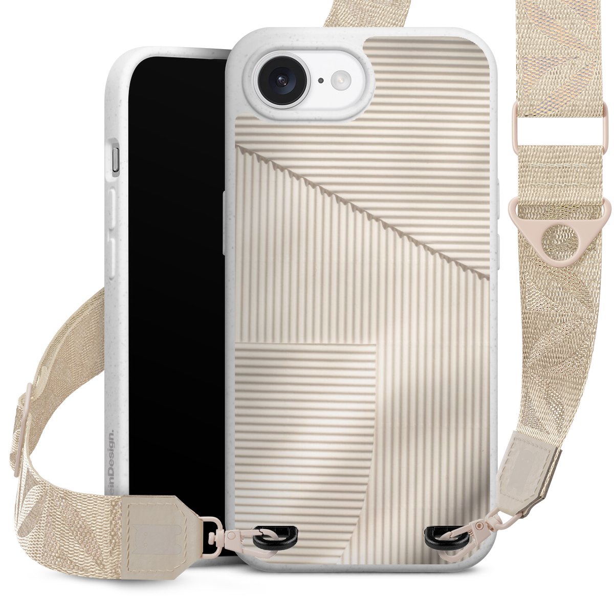 Gestalte Dein Case ganz nach Deinen Wünschen! Edles Creme oder lieber klassisches Schwarz? Du entscheidest, welche Farbe am besten zu Dir passt. Die dezenten Designs der Gurtbänder passen garantiert zu Deiner Hülle, egal mit welchem Lieblingsmotiv Du Dein Case bedrucken lässt.
