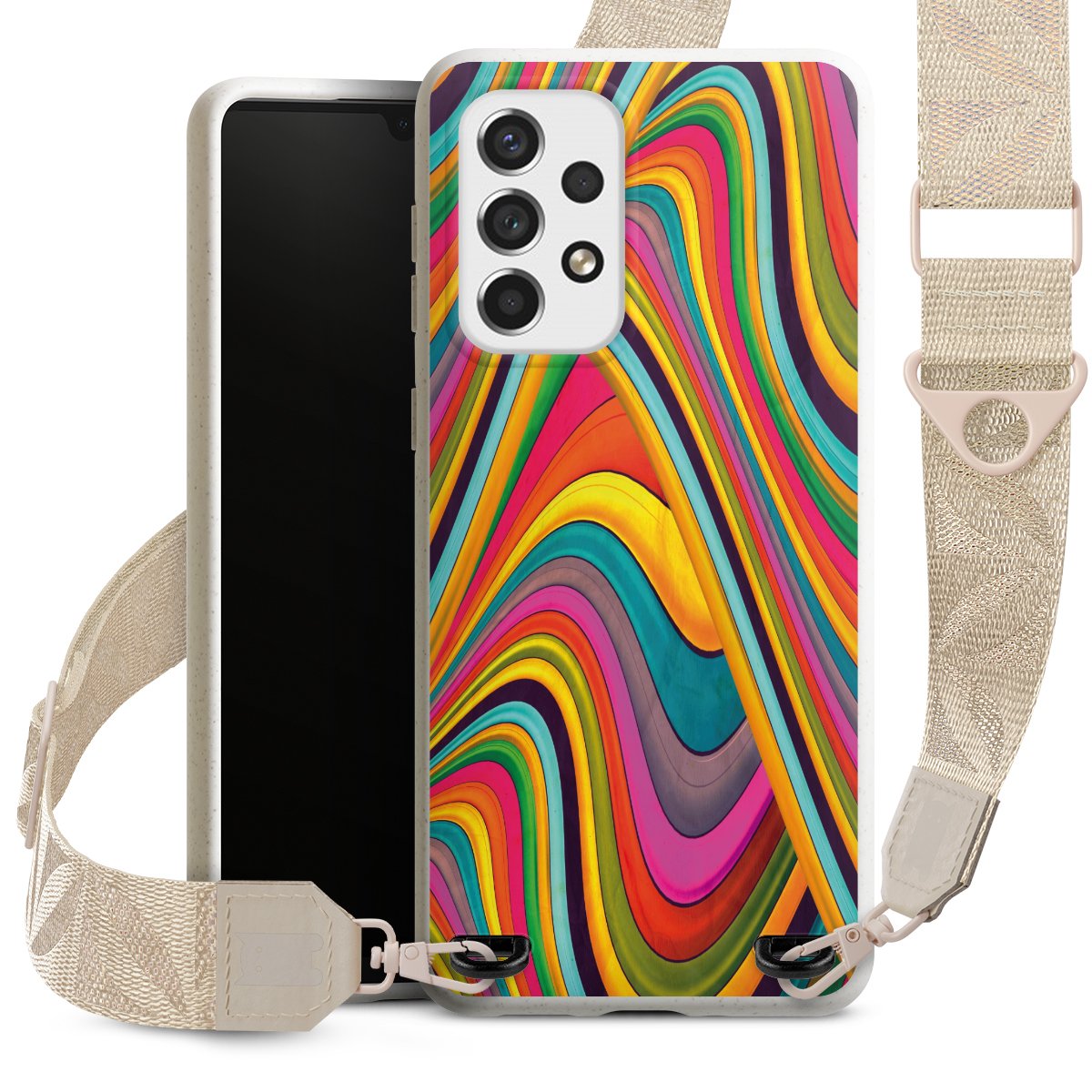 Gestalte Dein Case ganz nach Deinen Wünschen! Edles Creme oder lieber klassisches Schwarz? Du entscheidest, welche Farbe am besten zu Dir passt. Die dezenten Designs der Gurtbänder passen garantiert zu Deiner Hülle, egal mit welchem Lieblingsmotiv Du Dein Case bedrucken lässt.