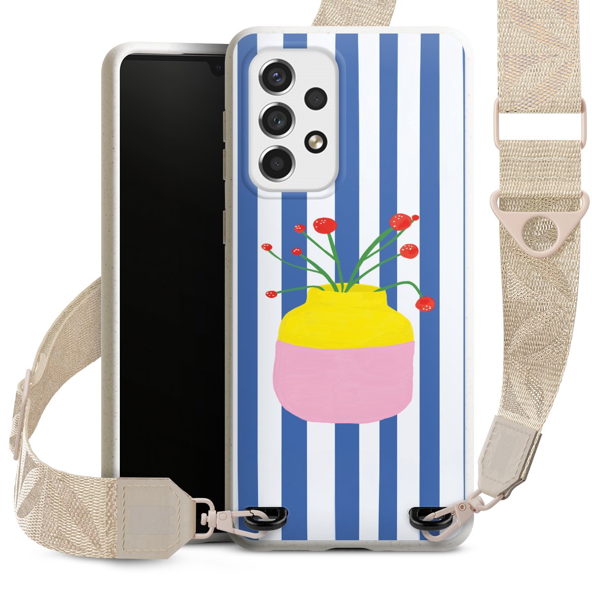 Gestalte Dein Case ganz nach Deinen Wünschen! Edles Creme oder lieber klassisches Schwarz? Du entscheidest, welche Farbe am besten zu Dir passt. Die dezenten Designs der Gurtbänder passen garantiert zu Deiner Hülle, egal mit welchem Lieblingsmotiv Du Dein Case bedrucken lässt.