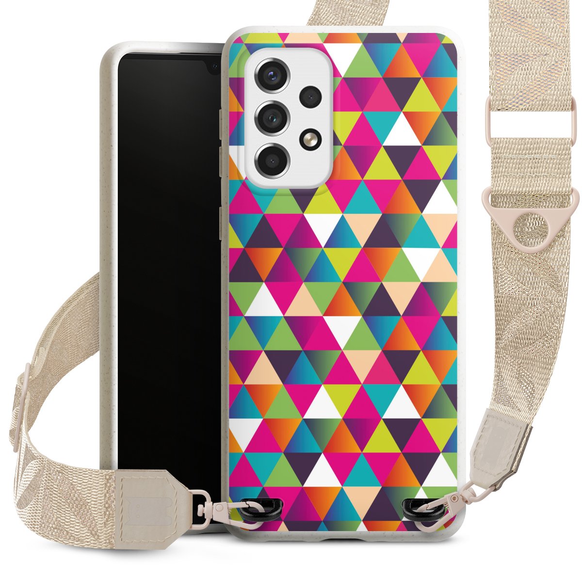 Gestalte Dein Case ganz nach Deinen Wünschen! Edles Creme oder lieber klassisches Schwarz? Du entscheidest, welche Farbe am besten zu Dir passt. Die dezenten Designs der Gurtbänder passen garantiert zu Deiner Hülle, egal mit welchem Lieblingsmotiv Du Dein Case bedrucken lässt.