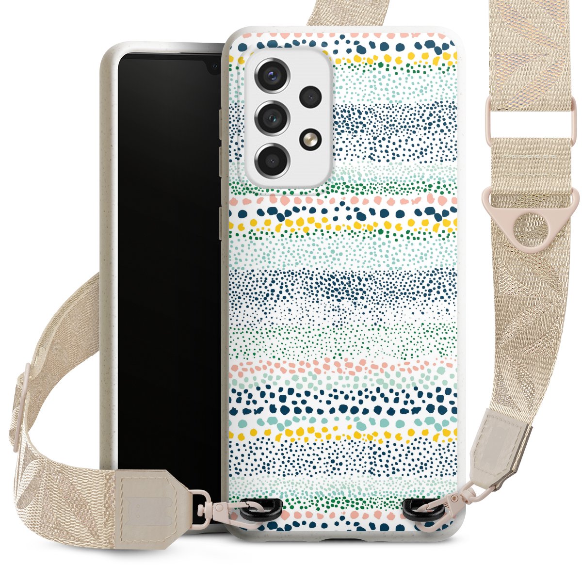 Gestalte Dein Case ganz nach Deinen Wünschen! Edles Creme oder lieber klassisches Schwarz? Du entscheidest, welche Farbe am besten zu Dir passt. Die dezenten Designs der Gurtbänder passen garantiert zu Deiner Hülle, egal mit welchem Lieblingsmotiv Du Dein Case bedrucken lässt.