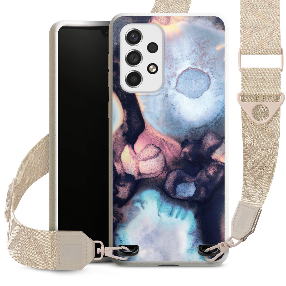 Gestalte Dein Case ganz nach Deinen Wünschen! Edles Creme oder lieber klassisches Schwarz? Du entscheidest, welche Farbe am besten zu Dir passt. Die dezenten Designs der Gurtbänder passen garantiert zu Deiner Hülle, egal mit welchem Lieblingsmotiv Du Dein Case bedrucken lässt.