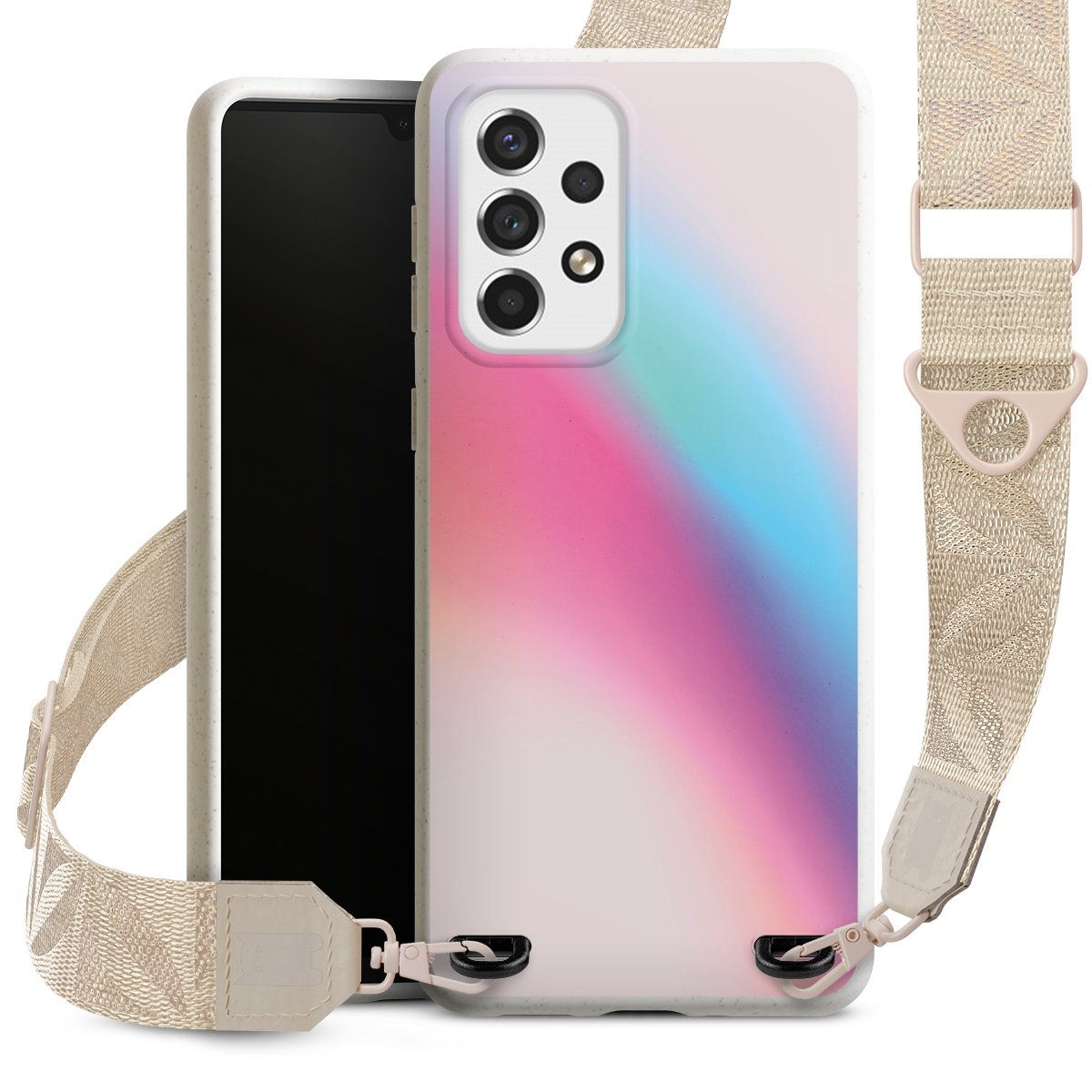 Gestalte Dein Case ganz nach Deinen Wünschen! Edles Creme oder lieber klassisches Schwarz? Du entscheidest, welche Farbe am besten zu Dir passt. Die dezenten Designs der Gurtbänder passen garantiert zu Deiner Hülle, egal mit welchem Lieblingsmotiv Du Dein Case bedrucken lässt.