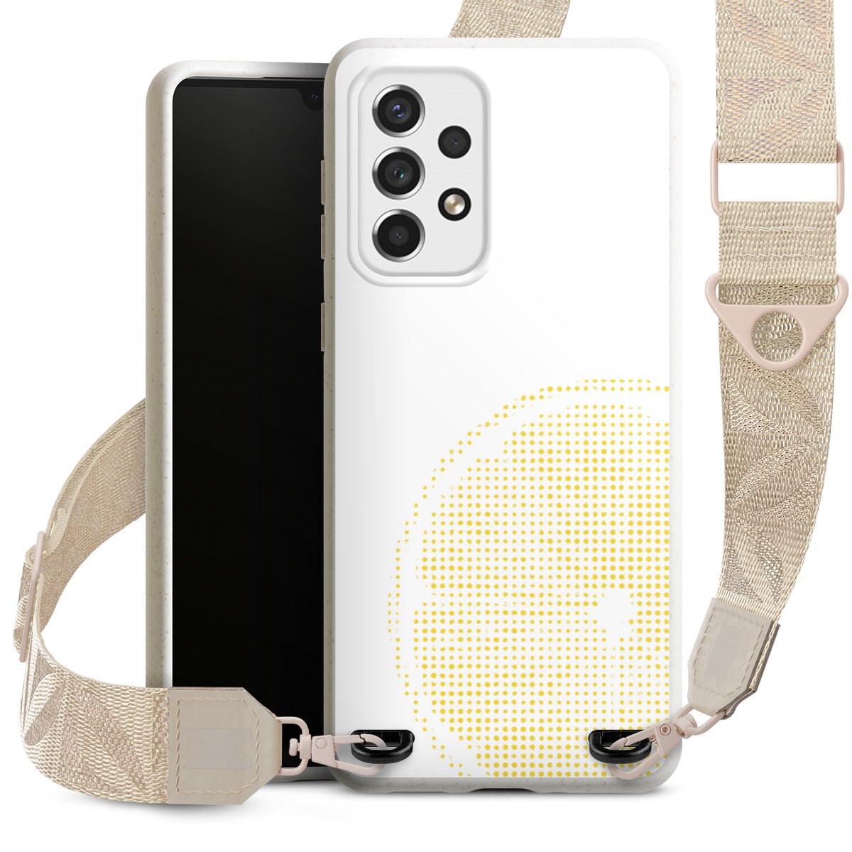 Gestalte Dein Case ganz nach Deinen Wünschen! Edles Creme oder lieber klassisches Schwarz? Du entscheidest, welche Farbe am besten zu Dir passt. Die dezenten Designs der Gurtbänder passen garantiert zu Deiner Hülle, egal mit welchem Lieblingsmotiv Du Dein Case bedrucken lässt.