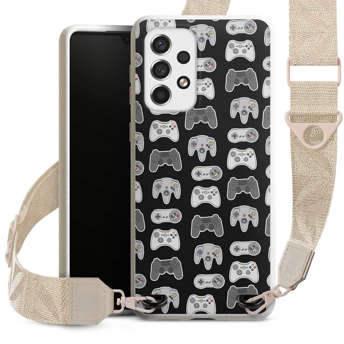 Gestalte Dein Case ganz nach Deinen Wünschen! Edles Creme oder lieber klassisches Schwarz? Du entscheidest, welche Farbe am besten zu Dir passt. Die dezenten Designs der Gurtbänder passen garantiert zu Deiner Hülle, egal mit welchem Lieblingsmotiv Du Dein Case bedrucken lässt.