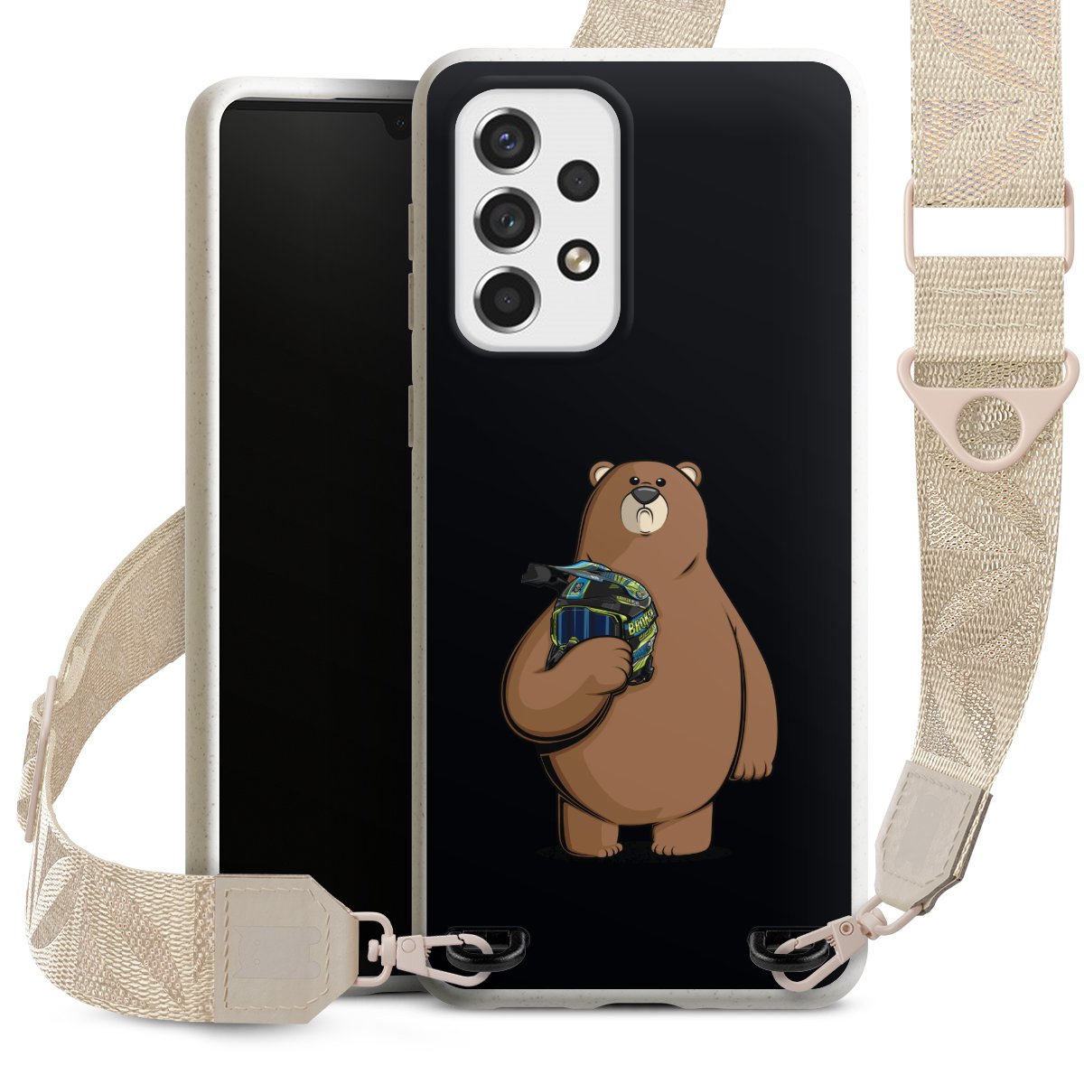 Gestalte Dein Case ganz nach Deinen Wünschen! Edles Creme oder lieber klassisches Schwarz? Du entscheidest, welche Farbe am besten zu Dir passt. Die dezenten Designs der Gurtbänder passen garantiert zu Deiner Hülle, egal mit welchem Lieblingsmotiv Du Dein Case bedrucken lässt.