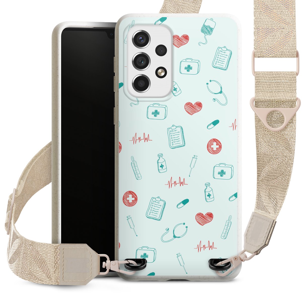 Gestalte Dein Case ganz nach Deinen Wünschen! Edles Creme oder lieber klassisches Schwarz? Du entscheidest, welche Farbe am besten zu Dir passt. Die dezenten Designs der Gurtbänder passen garantiert zu Deiner Hülle, egal mit welchem Lieblingsmotiv Du Dein Case bedrucken lässt.