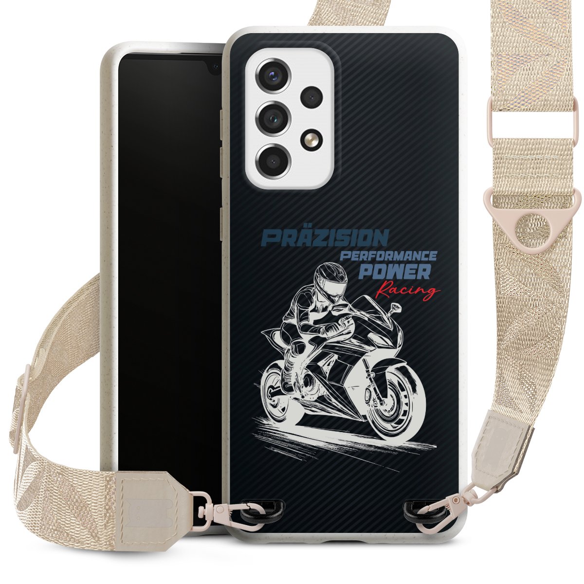 Gestalte Dein Case ganz nach Deinen Wünschen! Edles Creme oder lieber klassisches Schwarz? Du entscheidest, welche Farbe am besten zu Dir passt. Die dezenten Designs der Gurtbänder passen garantiert zu Deiner Hülle, egal mit welchem Lieblingsmotiv Du Dein Case bedrucken lässt.