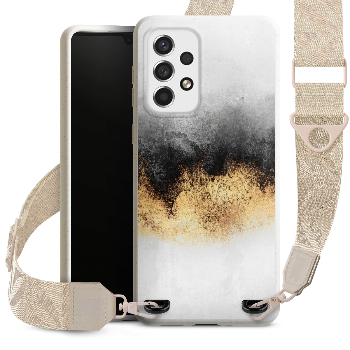 Gestalte Dein Case ganz nach Deinen Wünschen! Edles Creme oder lieber klassisches Schwarz? Du entscheidest, welche Farbe am besten zu Dir passt. Die dezenten Designs der Gurtbänder passen garantiert zu Deiner Hülle, egal mit welchem Lieblingsmotiv Du Dein Case bedrucken lässt.