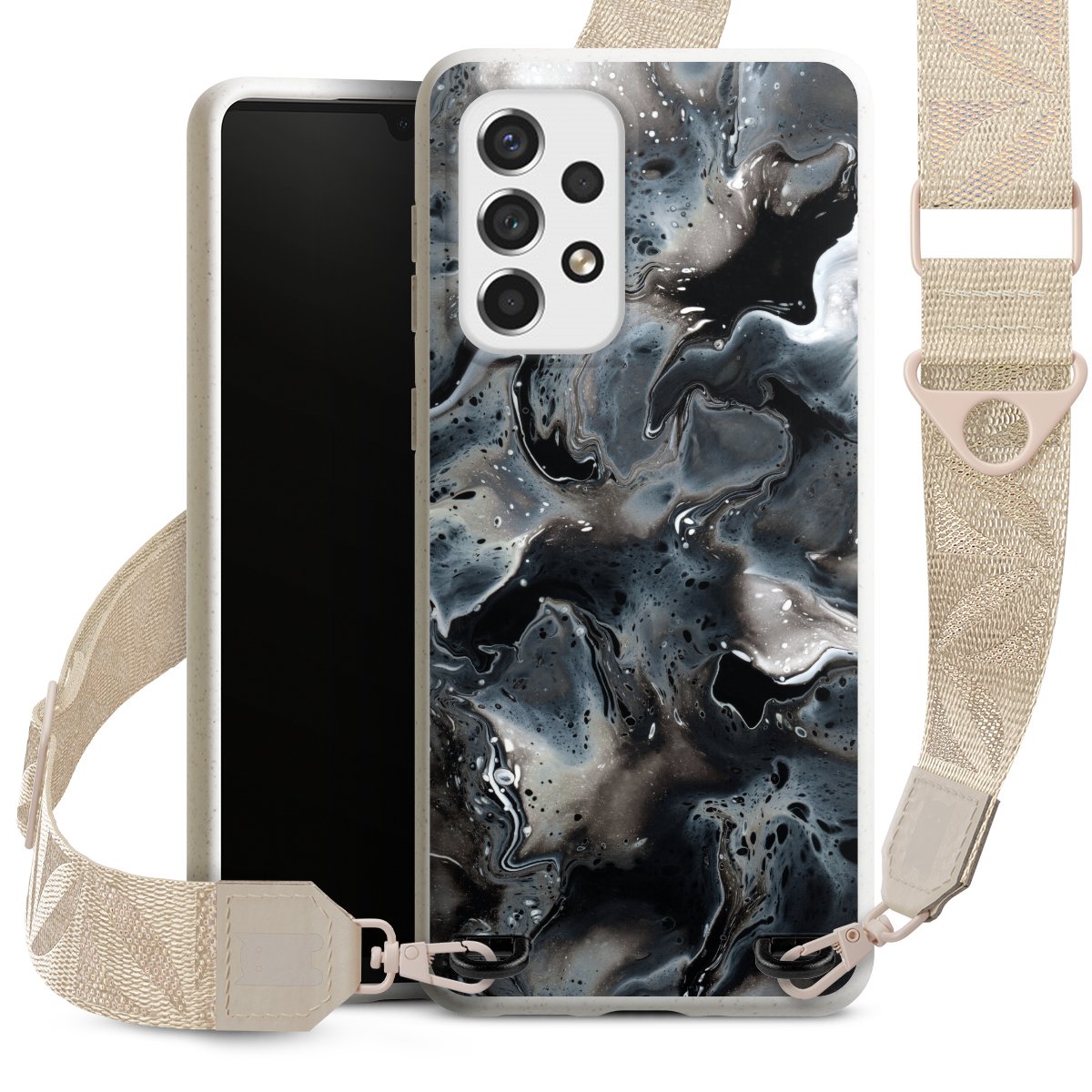 Gestalte Dein Case ganz nach Deinen Wünschen! Edles Creme oder lieber klassisches Schwarz? Du entscheidest, welche Farbe am besten zu Dir passt. Die dezenten Designs der Gurtbänder passen garantiert zu Deiner Hülle, egal mit welchem Lieblingsmotiv Du Dein Case bedrucken lässt.