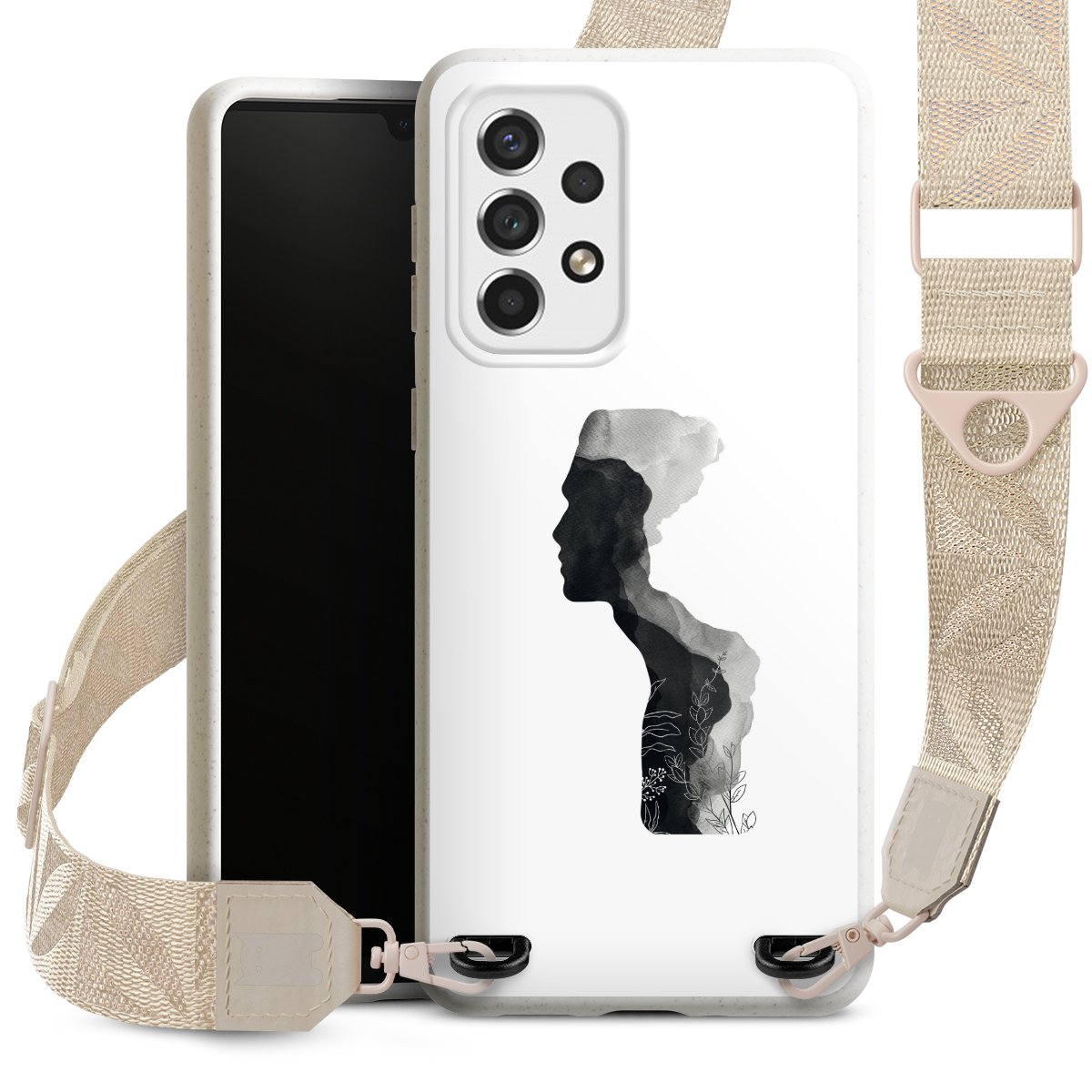 Gestalte Dein Case ganz nach Deinen Wünschen! Edles Creme oder lieber klassisches Schwarz? Du entscheidest, welche Farbe am besten zu Dir passt. Die dezenten Designs der Gurtbänder passen garantiert zu Deiner Hülle, egal mit welchem Lieblingsmotiv Du Dein Case bedrucken lässt.