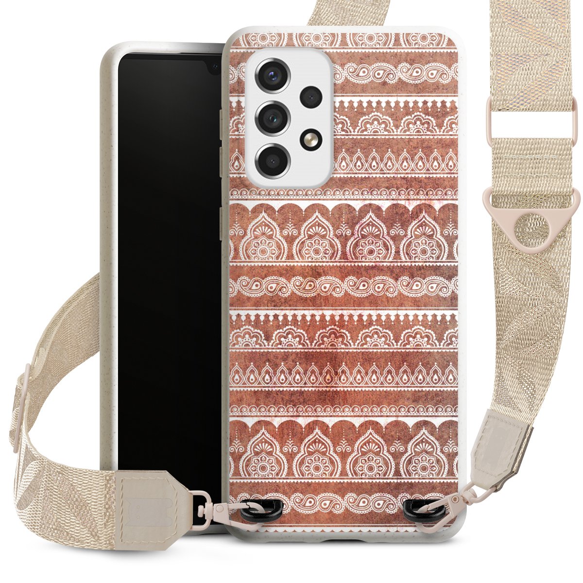 Gestalte Dein Case ganz nach Deinen Wünschen! Edles Creme oder lieber klassisches Schwarz? Du entscheidest, welche Farbe am besten zu Dir passt. Die dezenten Designs der Gurtbänder passen garantiert zu Deiner Hülle, egal mit welchem Lieblingsmotiv Du Dein Case bedrucken lässt.