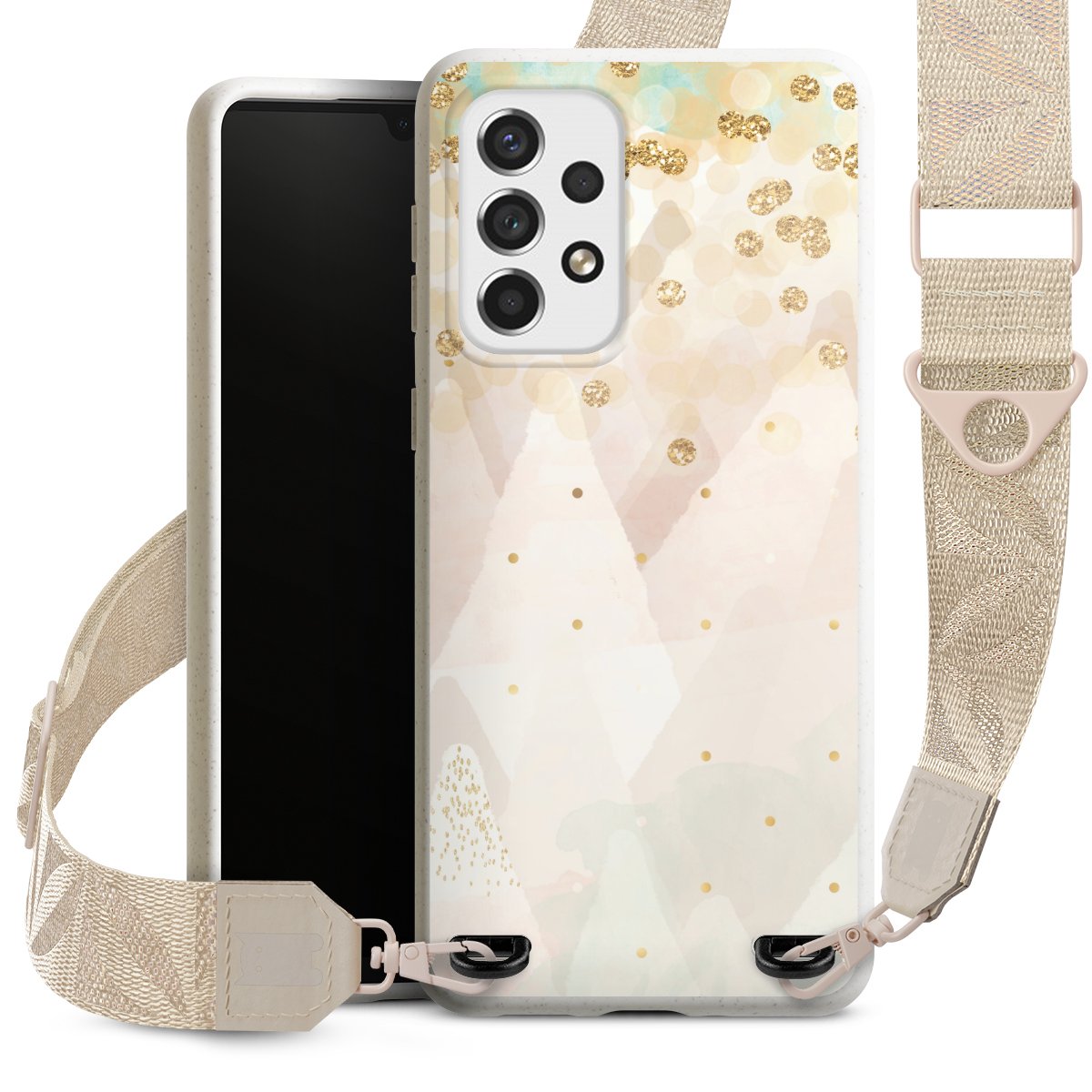 Gestalte Dein Case ganz nach Deinen Wünschen! Edles Creme oder lieber klassisches Schwarz? Du entscheidest, welche Farbe am besten zu Dir passt. Die dezenten Designs der Gurtbänder passen garantiert zu Deiner Hülle, egal mit welchem Lieblingsmotiv Du Dein Case bedrucken lässt.