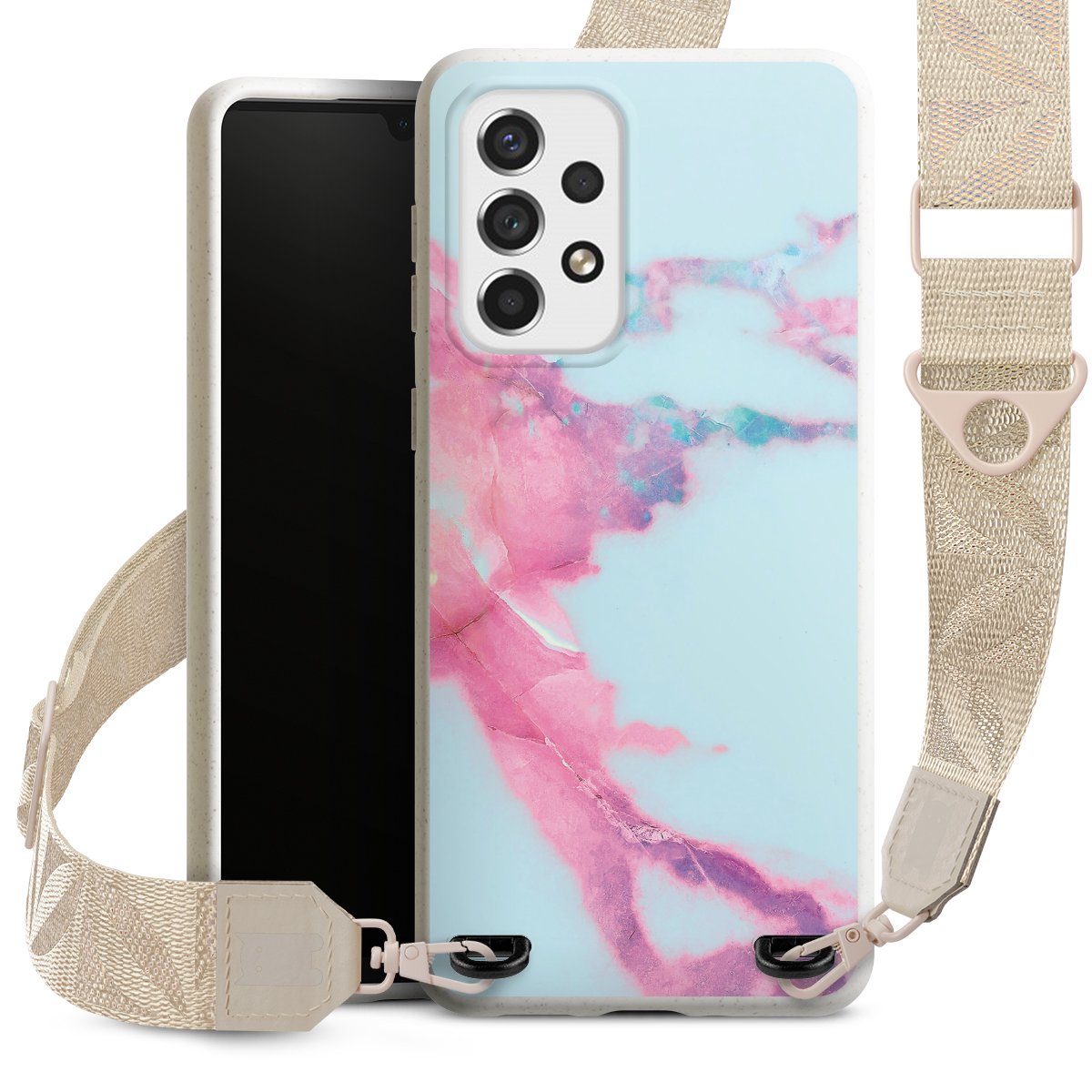 Gestalte Dein Case ganz nach Deinen Wünschen! Edles Creme oder lieber klassisches Schwarz? Du entscheidest, welche Farbe am besten zu Dir passt. Die dezenten Designs der Gurtbänder passen garantiert zu Deiner Hülle, egal mit welchem Lieblingsmotiv Du Dein Case bedrucken lässt.