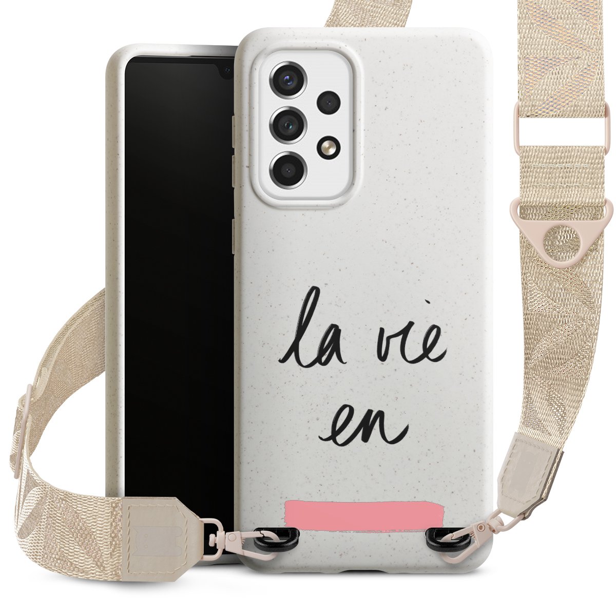 Gestalte Dein Case ganz nach Deinen Wünschen! Edles Creme oder lieber klassisches Schwarz? Du entscheidest, welche Farbe am besten zu Dir passt. Die dezenten Designs der Gurtbänder passen garantiert zu Deiner Hülle, egal mit welchem Lieblingsmotiv Du Dein Case bedrucken lässt.