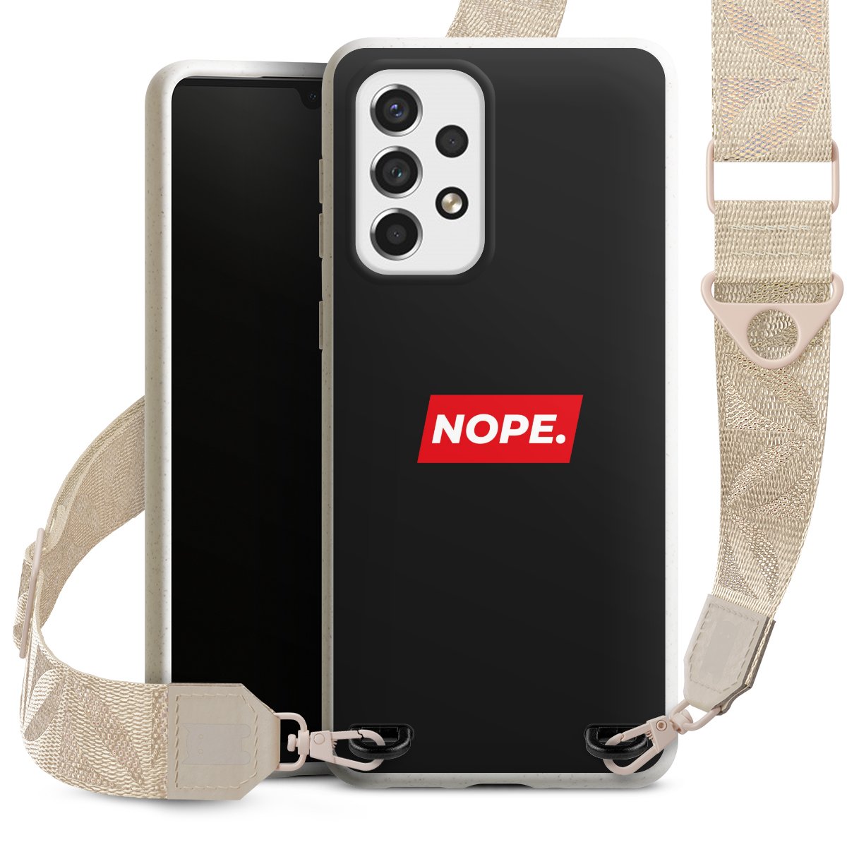 Gestalte Dein Case ganz nach Deinen Wünschen! Edles Creme oder lieber klassisches Schwarz? Du entscheidest, welche Farbe am besten zu Dir passt. Die dezenten Designs der Gurtbänder passen garantiert zu Deiner Hülle, egal mit welchem Lieblingsmotiv Du Dein Case bedrucken lässt.