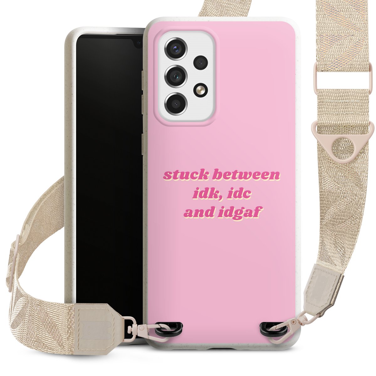 Gestalte Dein Case ganz nach Deinen Wünschen! Edles Creme oder lieber klassisches Schwarz? Du entscheidest, welche Farbe am besten zu Dir passt. Die dezenten Designs der Gurtbänder passen garantiert zu Deiner Hülle, egal mit welchem Lieblingsmotiv Du Dein Case bedrucken lässt.