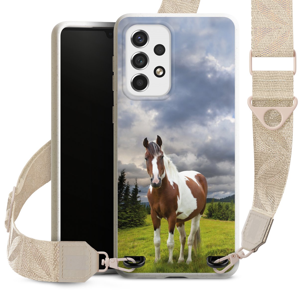 Gestalte Dein Case ganz nach Deinen Wünschen! Edles Creme oder lieber klassisches Schwarz? Du entscheidest, welche Farbe am besten zu Dir passt. Die dezenten Designs der Gurtbänder passen garantiert zu Deiner Hülle, egal mit welchem Lieblingsmotiv Du Dein Case bedrucken lässt.