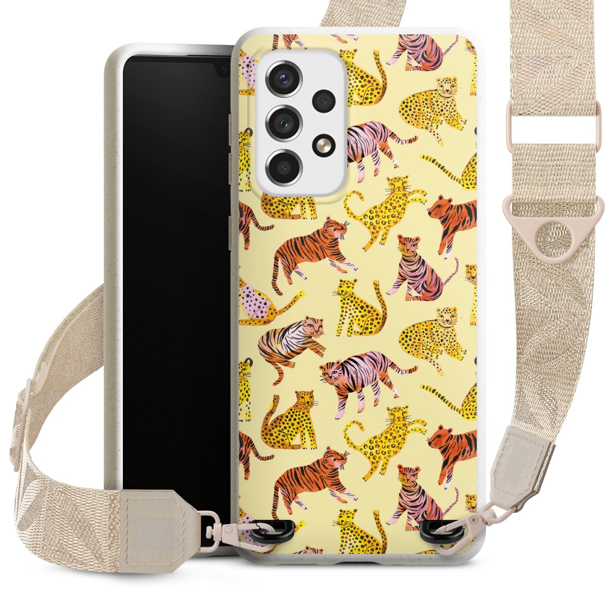 Gestalte Dein Case ganz nach Deinen Wünschen! Edles Creme oder lieber klassisches Schwarz? Du entscheidest, welche Farbe am besten zu Dir passt. Die dezenten Designs der Gurtbänder passen garantiert zu Deiner Hülle, egal mit welchem Lieblingsmotiv Du Dein Case bedrucken lässt.