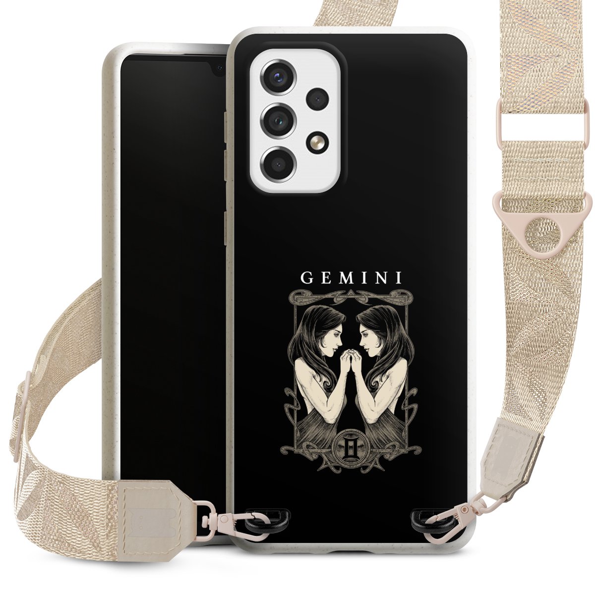 Gestalte Dein Case ganz nach Deinen Wünschen! Edles Creme oder lieber klassisches Schwarz? Du entscheidest, welche Farbe am besten zu Dir passt. Die dezenten Designs der Gurtbänder passen garantiert zu Deiner Hülle, egal mit welchem Lieblingsmotiv Du Dein Case bedrucken lässt.