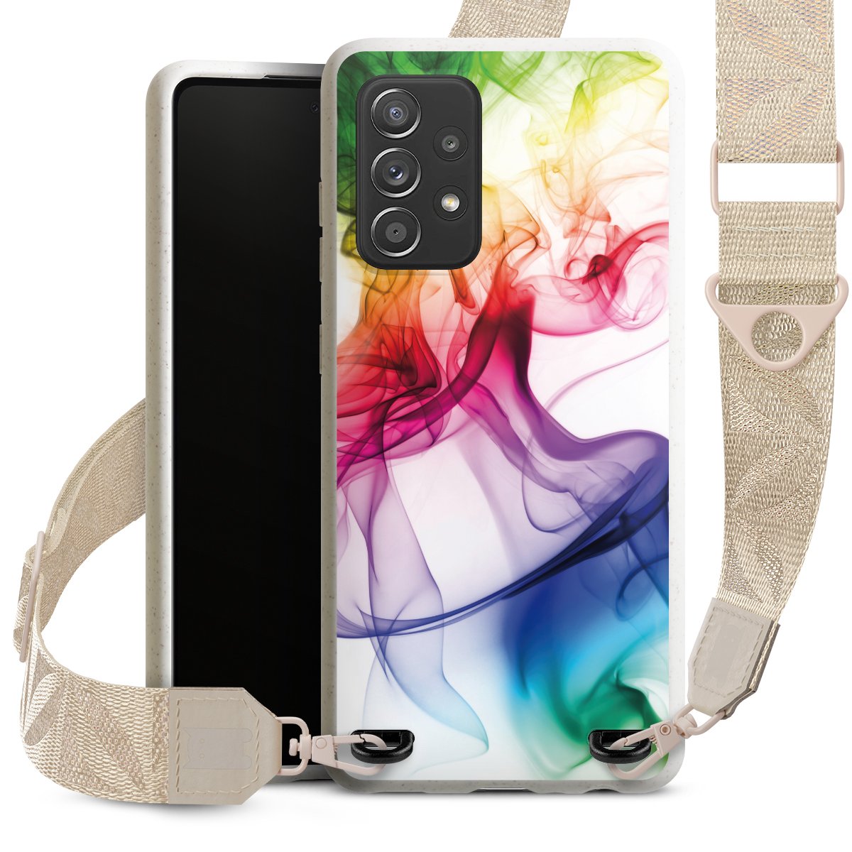 Gestalte Dein Case ganz nach Deinen Wünschen! Edles Creme oder lieber klassisches Schwarz? Du entscheidest, welche Farbe am besten zu Dir passt. Die dezenten Designs der Gurtbänder passen garantiert zu Deiner Hülle, egal mit welchem Lieblingsmotiv Du Dein Case bedrucken lässt.