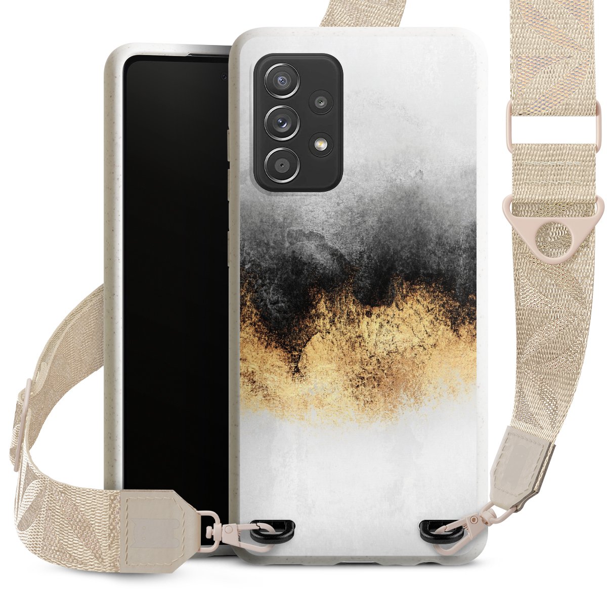 Gestalte Dein Case ganz nach Deinen Wünschen! Edles Creme oder lieber klassisches Schwarz? Du entscheidest, welche Farbe am besten zu Dir passt. Die dezenten Designs der Gurtbänder passen garantiert zu Deiner Hülle, egal mit welchem Lieblingsmotiv Du Dein Case bedrucken lässt.