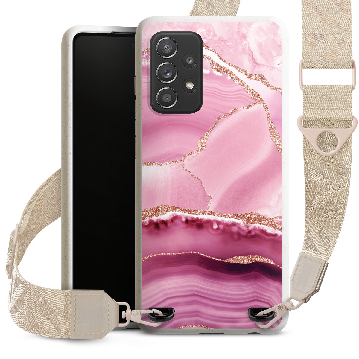 Gestalte Dein Case ganz nach Deinen Wünschen! Edles Creme oder lieber klassisches Schwarz? Du entscheidest, welche Farbe am besten zu Dir passt. Die dezenten Designs der Gurtbänder passen garantiert zu Deiner Hülle, egal mit welchem Lieblingsmotiv Du Dein Case bedrucken lässt.