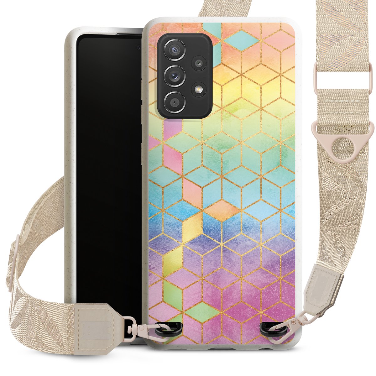 Gestalte Dein Case ganz nach Deinen Wünschen! Edles Creme oder lieber klassisches Schwarz? Du entscheidest, welche Farbe am besten zu Dir passt. Die dezenten Designs der Gurtbänder passen garantiert zu Deiner Hülle, egal mit welchem Lieblingsmotiv Du Dein Case bedrucken lässt.