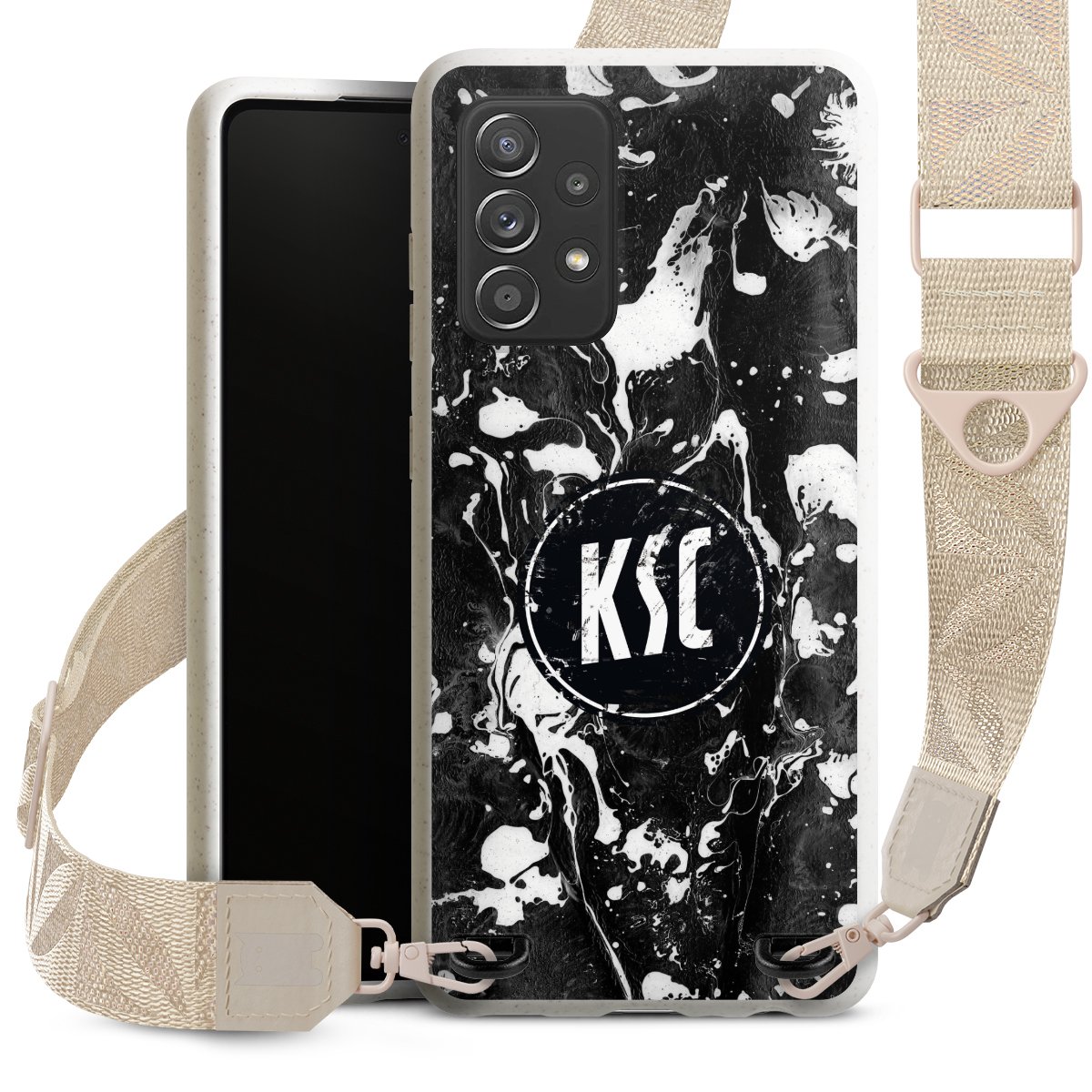 Gestalte Dein Case ganz nach Deinen Wünschen! Edles Creme oder lieber klassisches Schwarz? Du entscheidest, welche Farbe am besten zu Dir passt. Die dezenten Designs der Gurtbänder passen garantiert zu Deiner Hülle, egal mit welchem Lieblingsmotiv Du Dein Case bedrucken lässt.