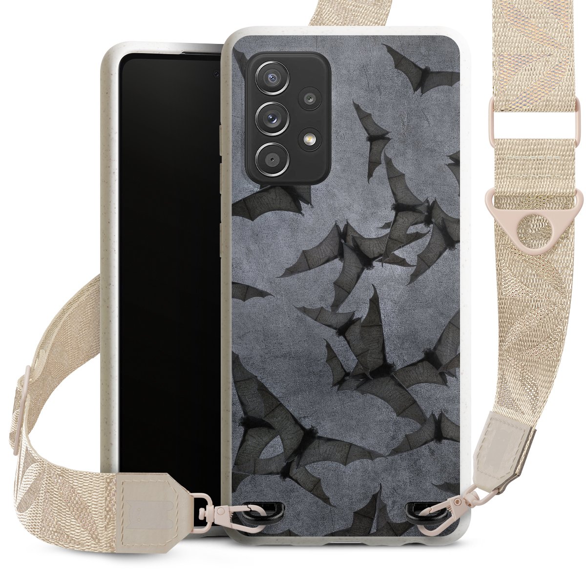 Gestalte Dein Case ganz nach Deinen Wünschen! Edles Creme oder lieber klassisches Schwarz? Du entscheidest, welche Farbe am besten zu Dir passt. Die dezenten Designs der Gurtbänder passen garantiert zu Deiner Hülle, egal mit welchem Lieblingsmotiv Du Dein Case bedrucken lässt.