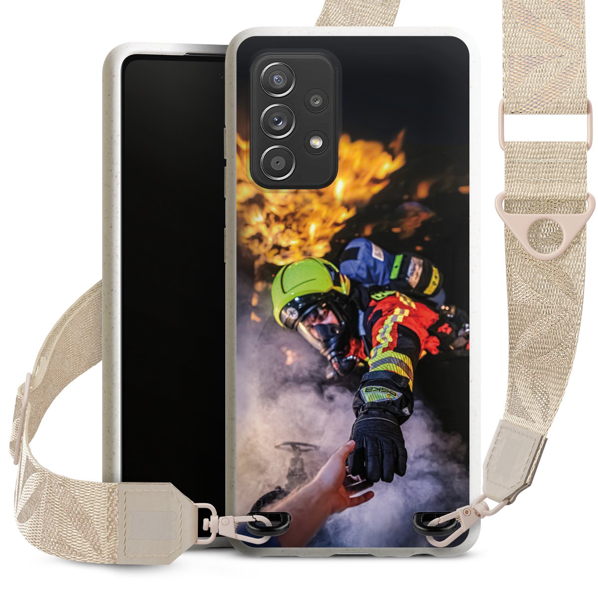 Feuerwehrmann greift nach der Hand