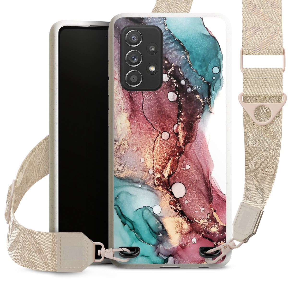 Gestalte Dein Case ganz nach Deinen Wünschen! Edles Creme oder lieber klassisches Schwarz? Du entscheidest, welche Farbe am besten zu Dir passt. Die dezenten Designs der Gurtbänder passen garantiert zu Deiner Hülle, egal mit welchem Lieblingsmotiv Du Dein Case bedrucken lässt.