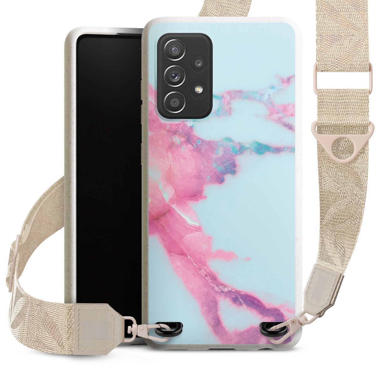 Gestalte Dein Case ganz nach Deinen Wünschen! Edles Creme oder lieber klassisches Schwarz? Du entscheidest, welche Farbe am besten zu Dir passt. Die dezenten Designs der Gurtbänder passen garantiert zu Deiner Hülle, egal mit welchem Lieblingsmotiv Du Dein Case bedrucken lässt.