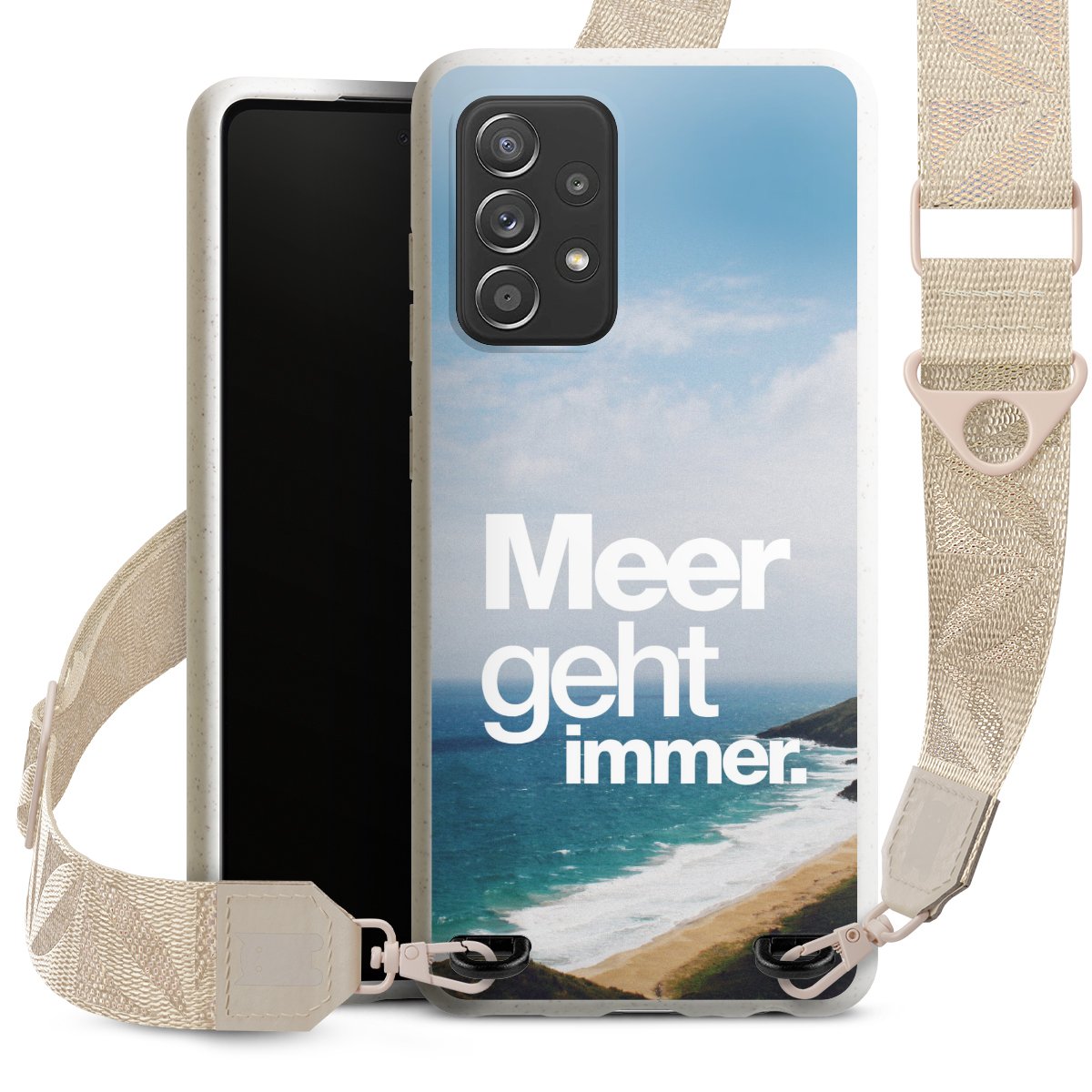 Gestalte Dein Case ganz nach Deinen Wünschen! Edles Creme oder lieber klassisches Schwarz? Du entscheidest, welche Farbe am besten zu Dir passt. Die dezenten Designs der Gurtbänder passen garantiert zu Deiner Hülle, egal mit welchem Lieblingsmotiv Du Dein Case bedrucken lässt.