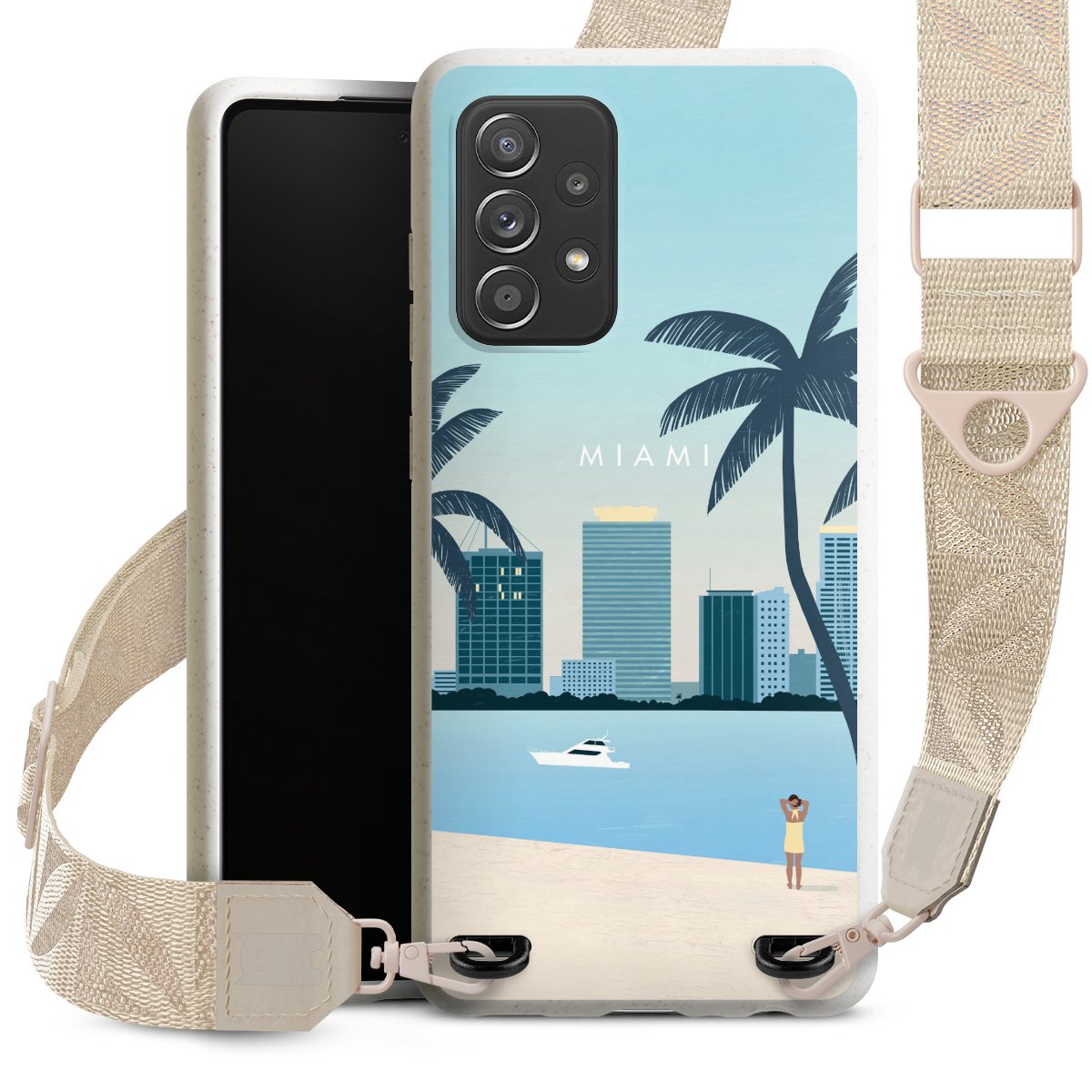 Gestalte Dein Case ganz nach Deinen Wünschen! Edles Creme oder lieber klassisches Schwarz? Du entscheidest, welche Farbe am besten zu Dir passt. Die dezenten Designs der Gurtbänder passen garantiert zu Deiner Hülle, egal mit welchem Lieblingsmotiv Du Dein Case bedrucken lässt.
