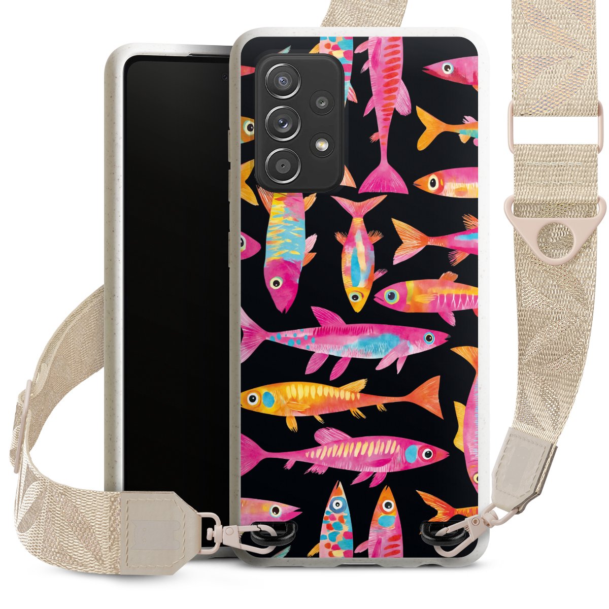 Gestalte Dein Case ganz nach Deinen Wünschen! Edles Creme oder lieber klassisches Schwarz? Du entscheidest, welche Farbe am besten zu Dir passt. Die dezenten Designs der Gurtbänder passen garantiert zu Deiner Hülle, egal mit welchem Lieblingsmotiv Du Dein Case bedrucken lässt.