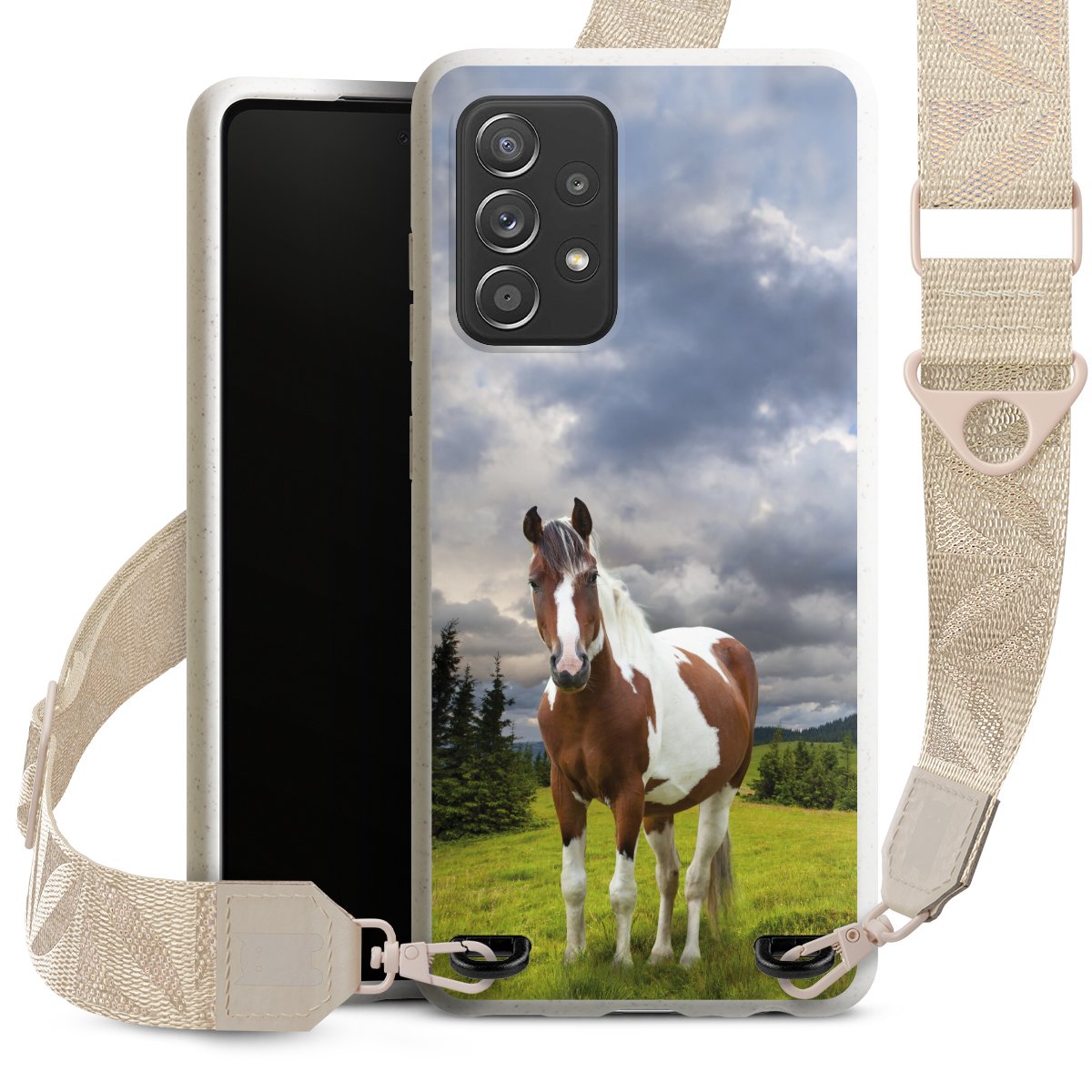 Gestalte Dein Case ganz nach Deinen Wünschen! Edles Creme oder lieber klassisches Schwarz? Du entscheidest, welche Farbe am besten zu Dir passt. Die dezenten Designs der Gurtbänder passen garantiert zu Deiner Hülle, egal mit welchem Lieblingsmotiv Du Dein Case bedrucken lässt.