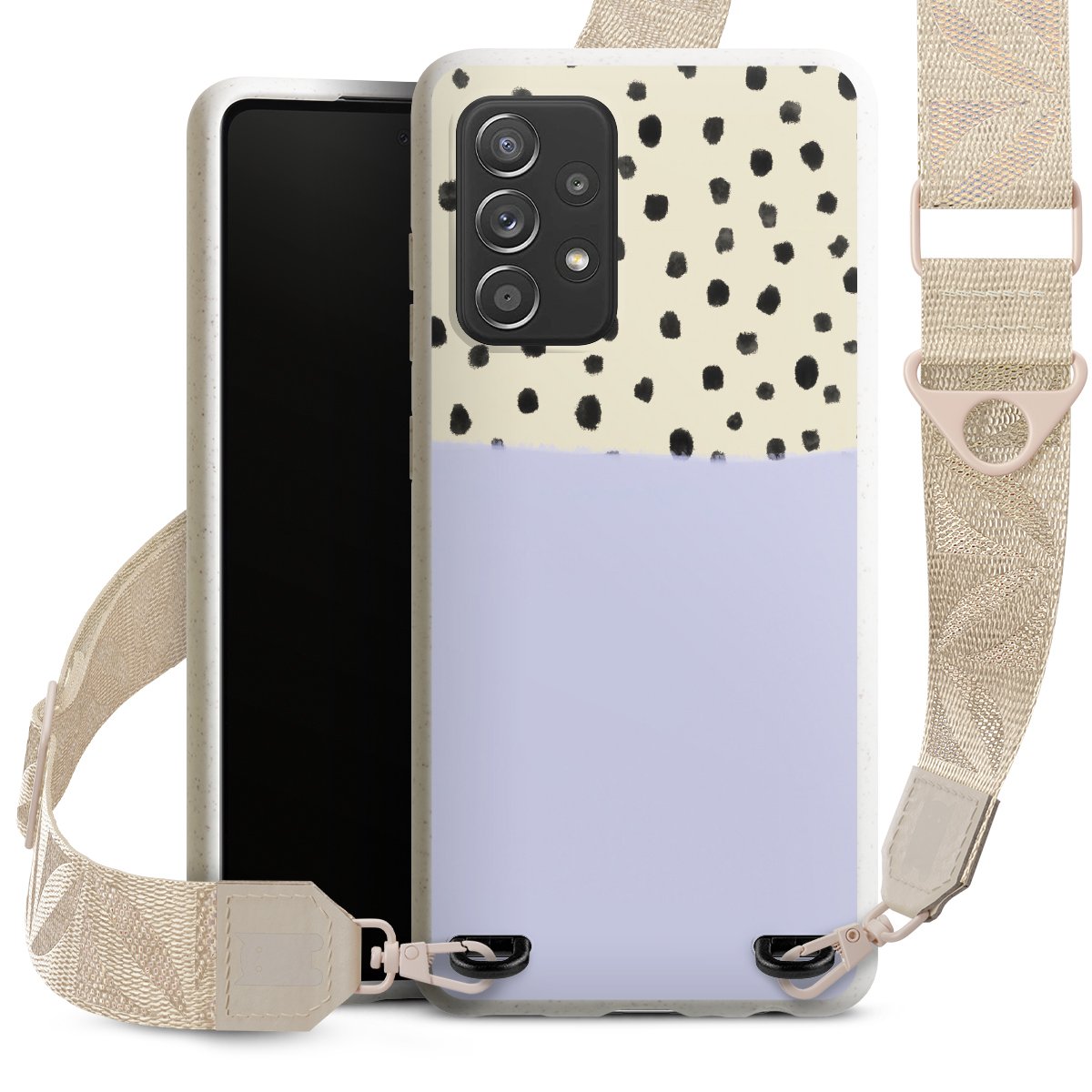 Gestalte Dein Case ganz nach Deinen Wünschen! Edles Creme oder lieber klassisches Schwarz? Du entscheidest, welche Farbe am besten zu Dir passt. Die dezenten Designs der Gurtbänder passen garantiert zu Deiner Hülle, egal mit welchem Lieblingsmotiv Du Dein Case bedrucken lässt.