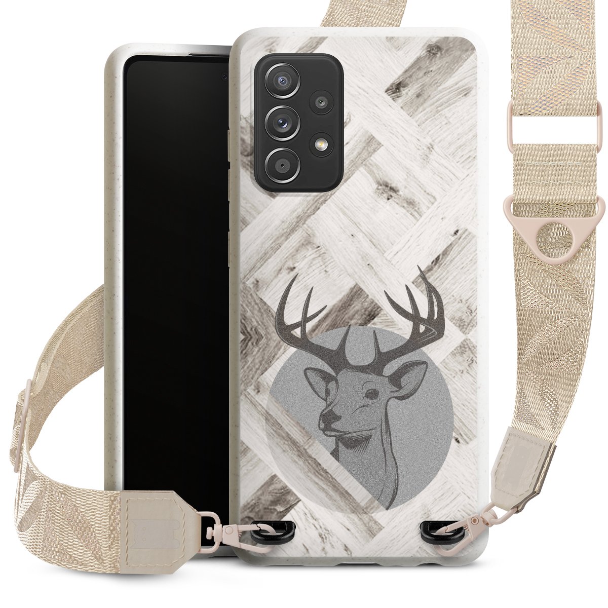 Gestalte Dein Case ganz nach Deinen Wünschen! Edles Creme oder lieber klassisches Schwarz? Du entscheidest, welche Farbe am besten zu Dir passt. Die dezenten Designs der Gurtbänder passen garantiert zu Deiner Hülle, egal mit welchem Lieblingsmotiv Du Dein Case bedrucken lässt.