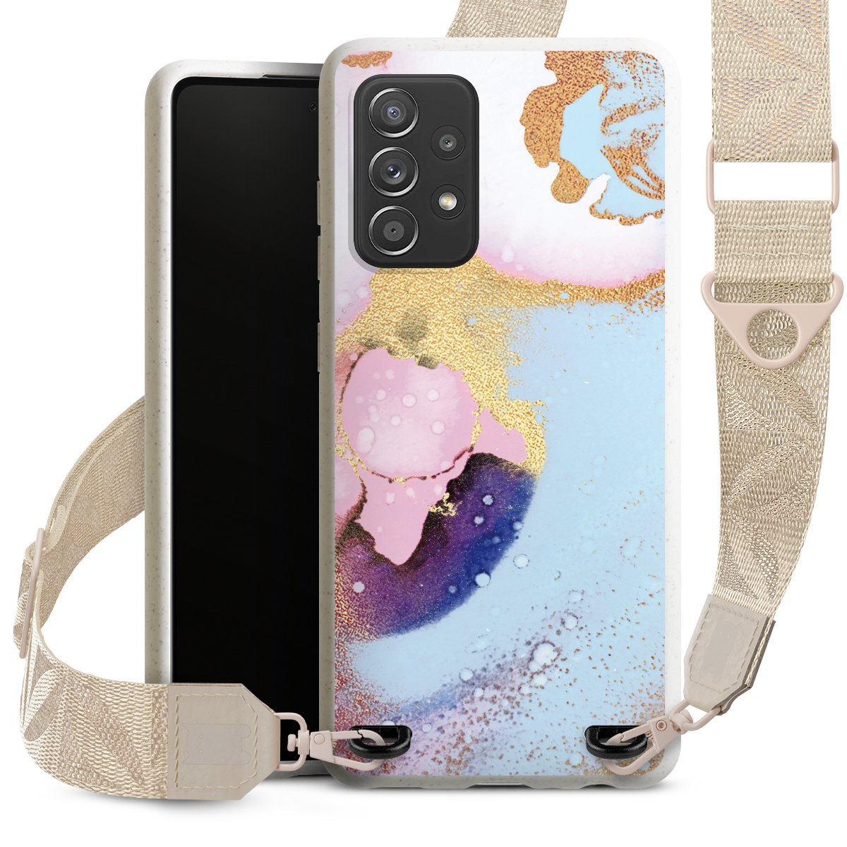 Gestalte Dein Case ganz nach Deinen Wünschen! Edles Creme oder lieber klassisches Schwarz? Du entscheidest, welche Farbe am besten zu Dir passt. Die dezenten Designs der Gurtbänder passen garantiert zu Deiner Hülle, egal mit welchem Lieblingsmotiv Du Dein Case bedrucken lässt.