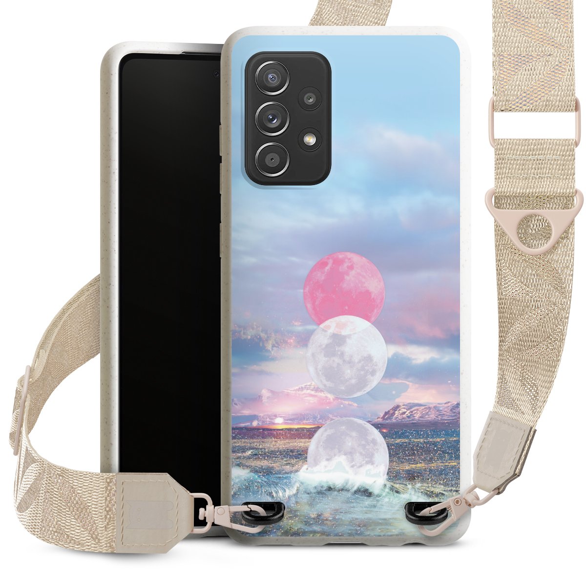 Gestalte Dein Case ganz nach Deinen Wünschen! Edles Creme oder lieber klassisches Schwarz? Du entscheidest, welche Farbe am besten zu Dir passt. Die dezenten Designs der Gurtbänder passen garantiert zu Deiner Hülle, egal mit welchem Lieblingsmotiv Du Dein Case bedrucken lässt.