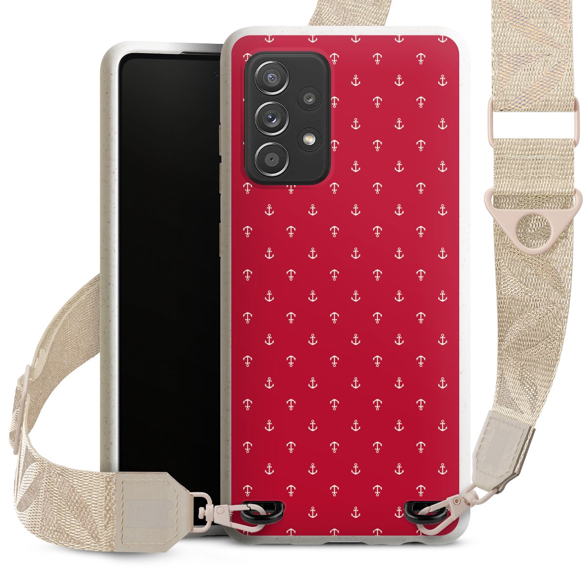 Gestalte Dein Case ganz nach Deinen Wünschen! Edles Creme oder lieber klassisches Schwarz? Du entscheidest, welche Farbe am besten zu Dir passt. Die dezenten Designs der Gurtbänder passen garantiert zu Deiner Hülle, egal mit welchem Lieblingsmotiv Du Dein Case bedrucken lässt.