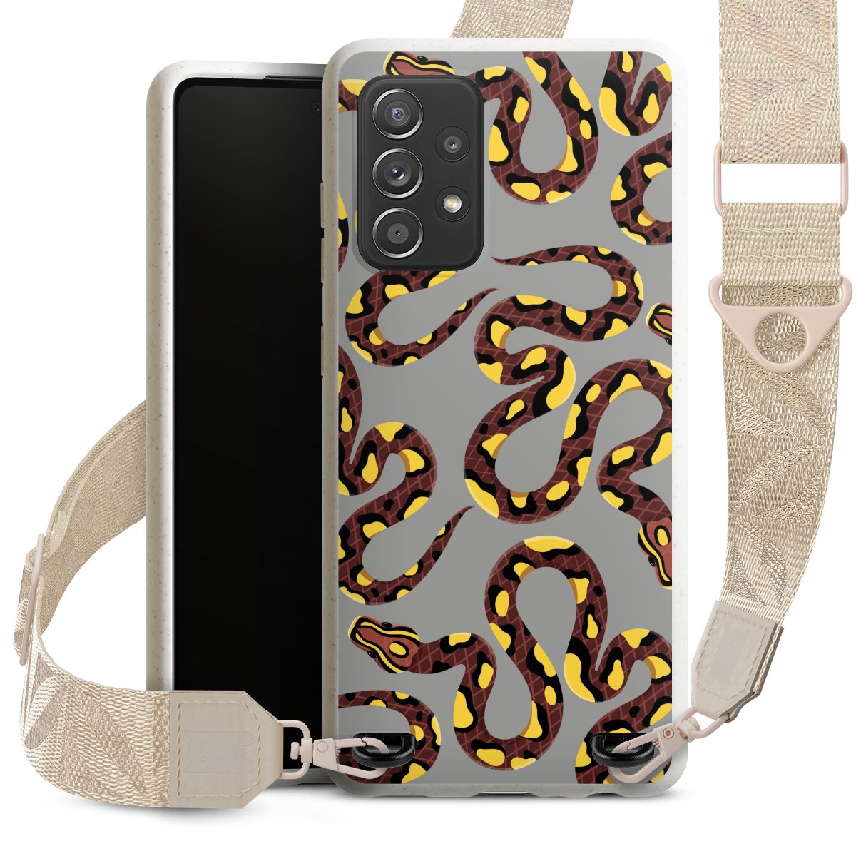 Gestalte Dein Case ganz nach Deinen Wünschen! Edles Creme oder lieber klassisches Schwarz? Du entscheidest, welche Farbe am besten zu Dir passt. Die dezenten Designs der Gurtbänder passen garantiert zu Deiner Hülle, egal mit welchem Lieblingsmotiv Du Dein Case bedrucken lässt.